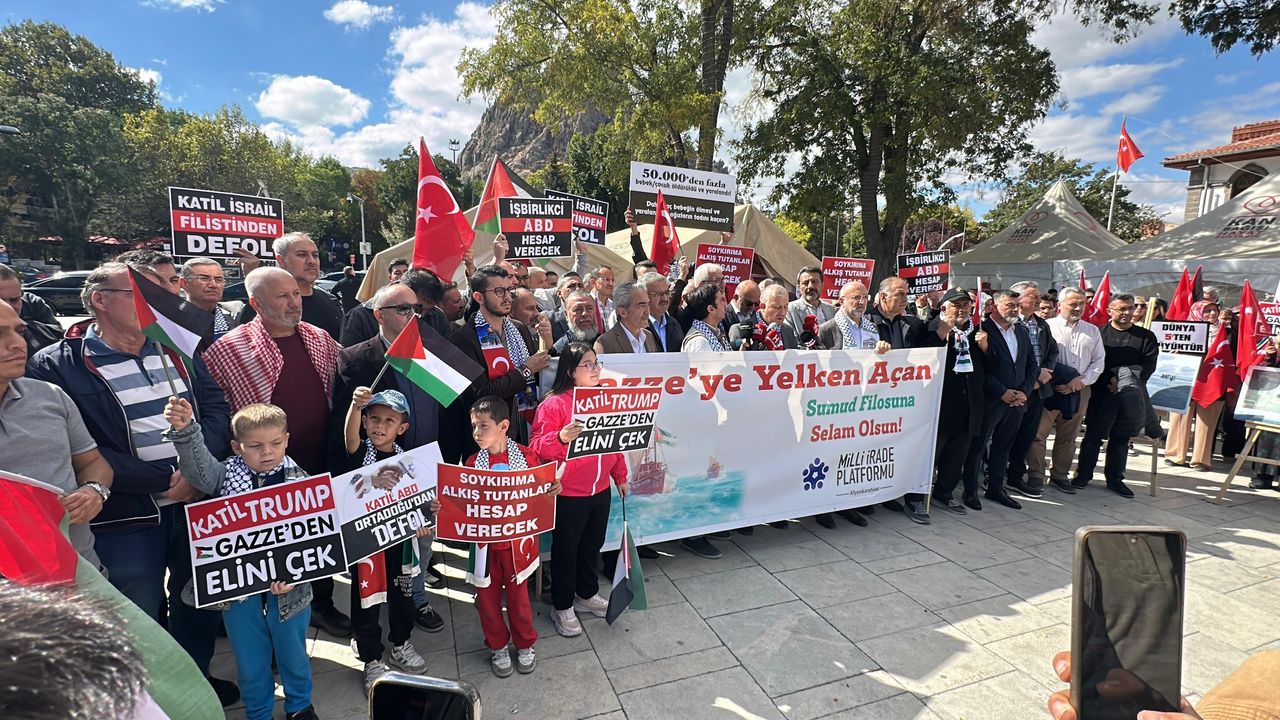 "Terörist İsrail, Gazze'deki ablukayı delmeye çalışan aktivistlere saldırıyor, tutukluyor. Ancak Sumud Filosu'ndan bir gemi fiilen Gazze'ye ulaştı ve abluka delindi. Biz Afyonkarahisar Milli İrade Platformu olarak bu girişimleri destekliyor, aktivistlerle dayanışmamızı ifade ediyoruz. Gazze'ye kesintisiz insani yardım sağlanmalı, İsrail abluka altına alınmalı ve Filistin halkının yanında durulmalıdır."