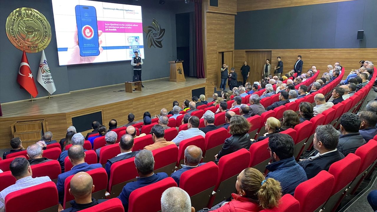 Nazilli Ticaret Odası Konferans Salonu'nda gerçekleştirilen SİBERAY bilgilendirme seminerinde, polis memurları vatandaşlara internet ve telefon dolandırıcılığı, sosyal medya üzerinden yapılan siber saldırılar ve uyuşturucuya karşı alınabilecek önlemleri anlattı.