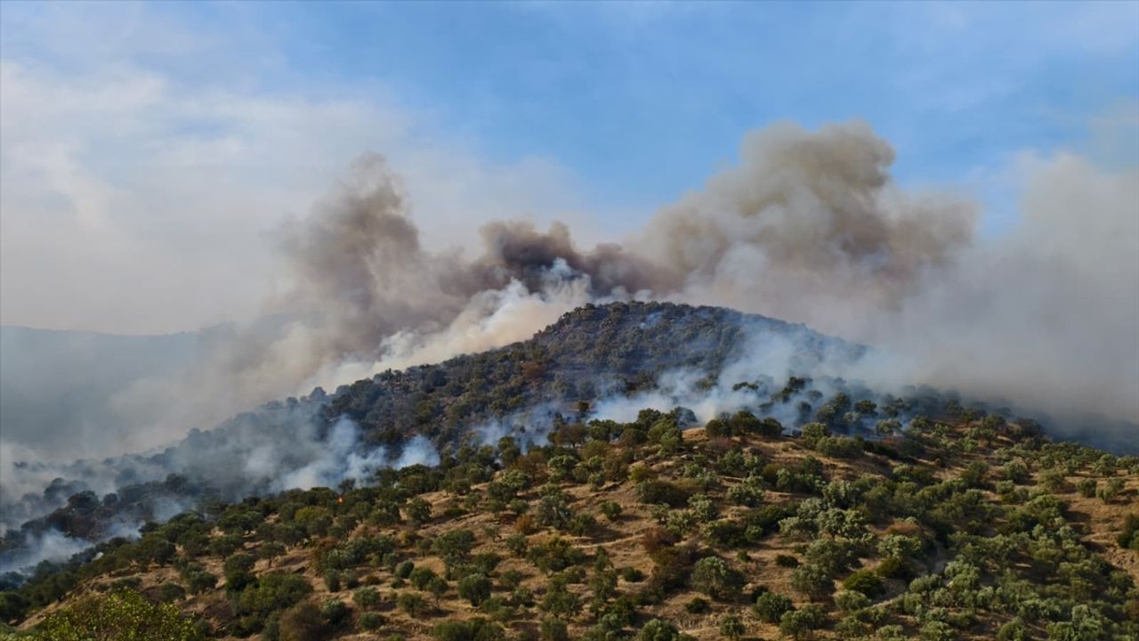 Rüzgarın etkili olduğu bölgede ekipler, yangına havadan ve karadan müdahale ediyor.