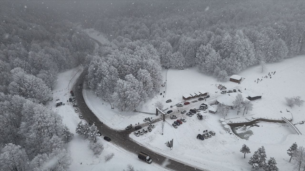 Beyaz örtüyle kaplanan tabiat parkı ve mesire alanında vatandaşlar, yüzeyi buz tutan göl çevresinde yürüyüş yaptı, bazı ziyaretçiler de piknik yaparak mangal yaktı.