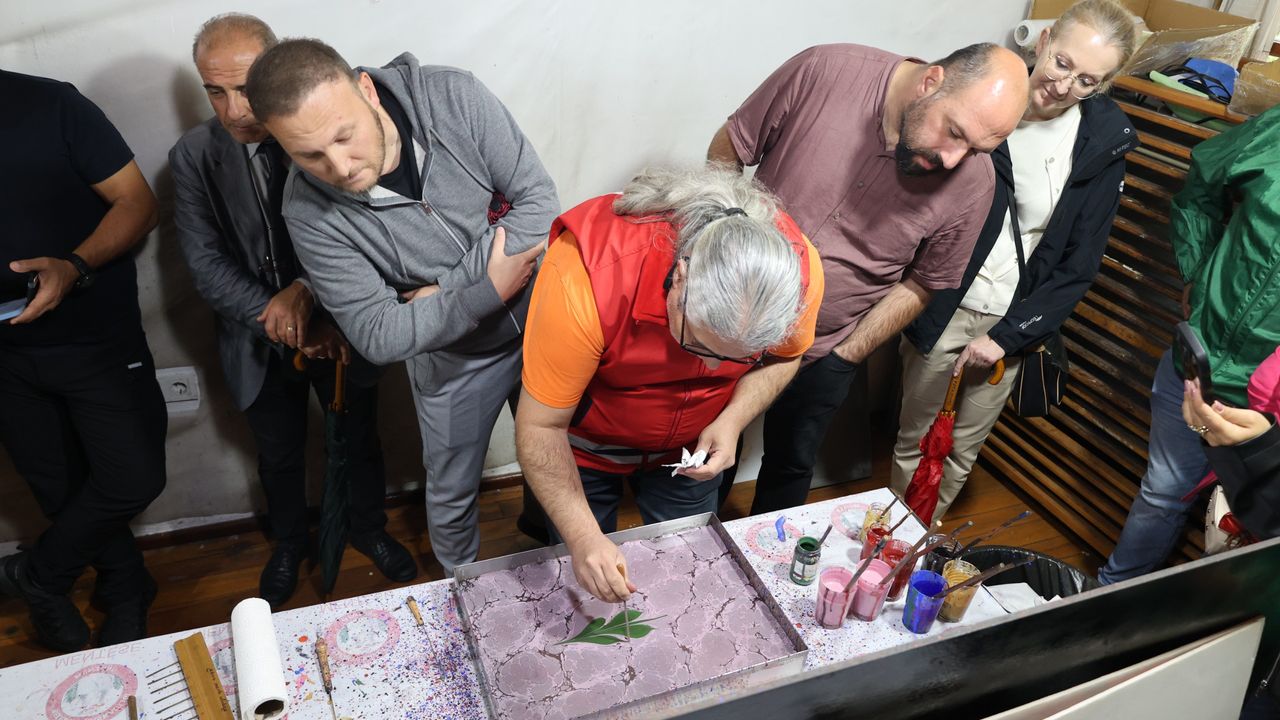 Etkinlikte, köklü bir geçmişe sahip olan ebru sanatı, sanatçı Yavuz Merih Ulubey tarafından uygulamalı olarak anlatıldı.