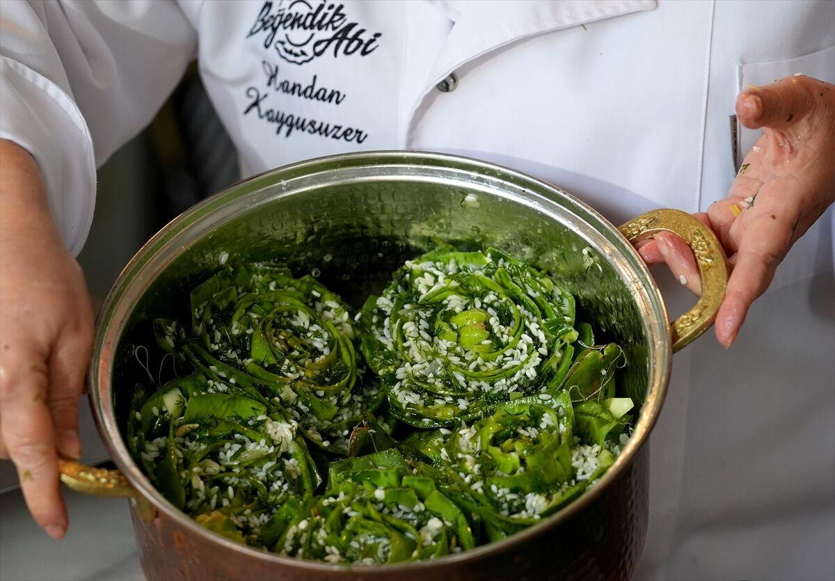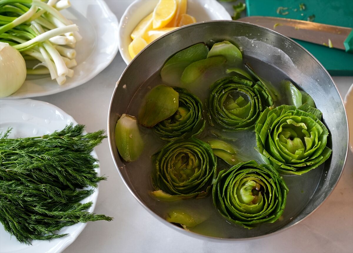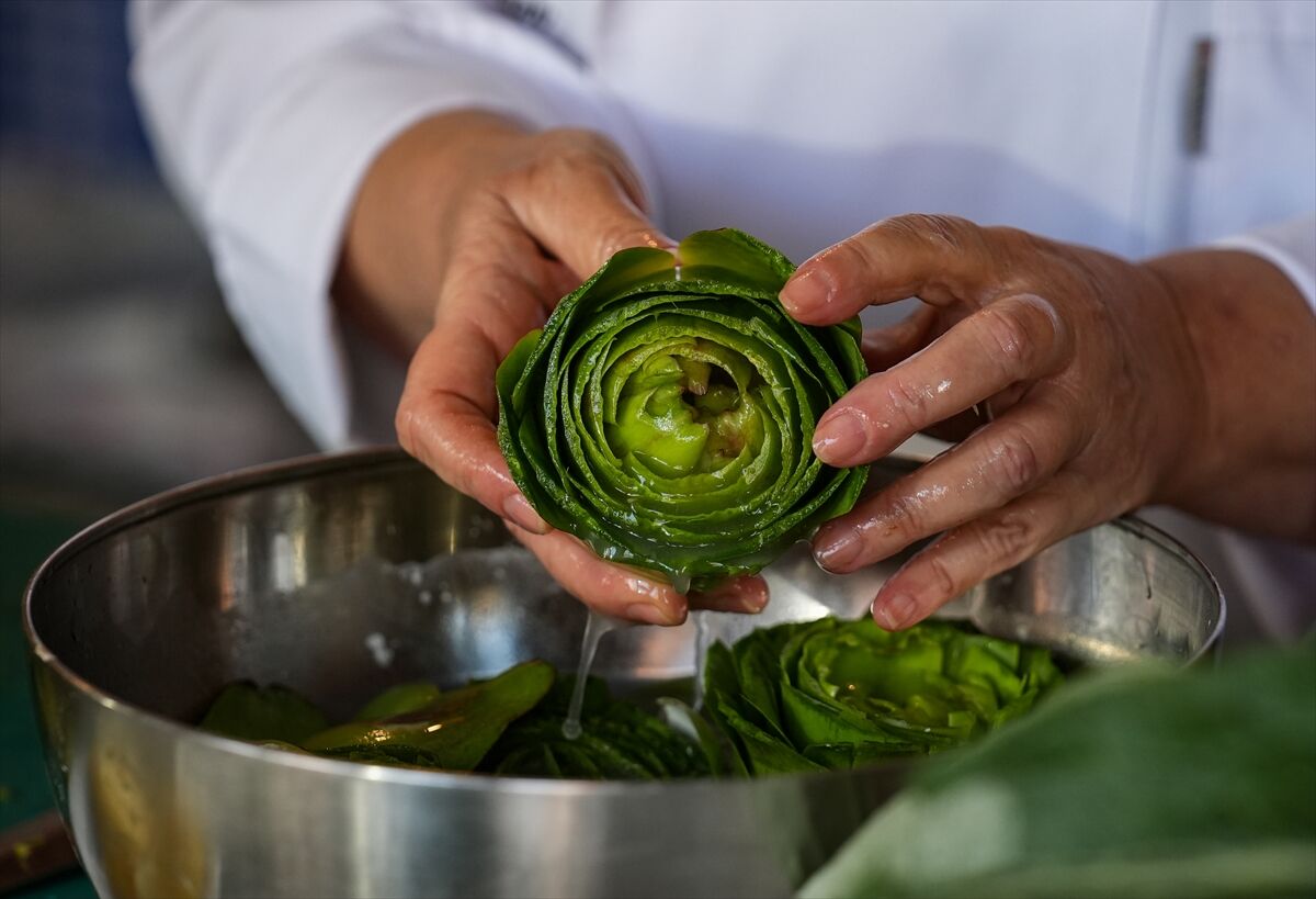 Şef Handan Kaygusuzer, enginarın İzmir mutfağı için önemli bir sebze olduğunu belirterek çorbalardan zeytinyağlılara kadar birçok yemekte kullanıldığını söyledi. Zeytinyağlı enginar dolmasının hazırlanmasının emek istediğini ancak lezzeti nedeniyle sofralarda sıkça tercih edildiğini ifade eden Kaygusuzer, yapraklarının sıyrılarak yenmesi sayesinde çocuklar tarafından da sevildiğini dile getirdi. Dolmanın iç harcında kuru soğan, taze soğan, dereotu ve pirinç gibi malzemelerin kullanıldığını anlatan Kaygusuzer, bol zeytinyağının yemeğe ayrı bir lezzet kattığını söyledi.