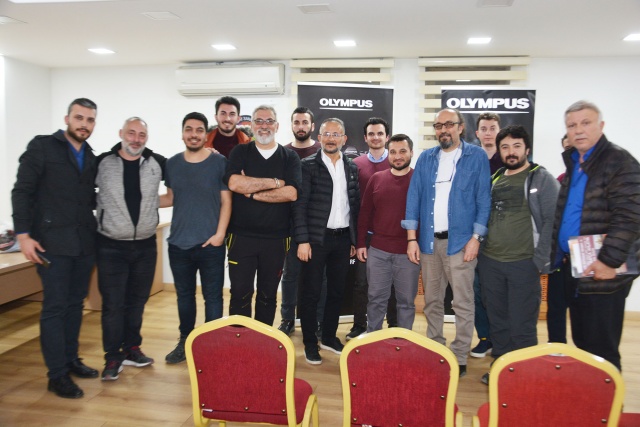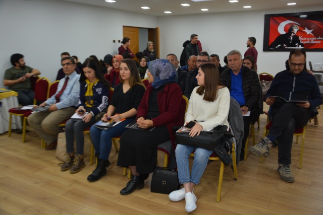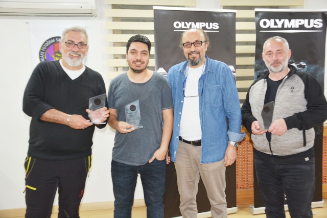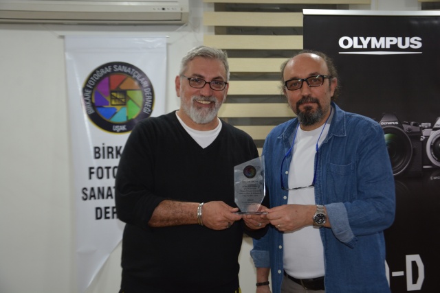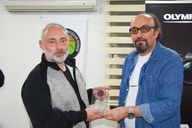 Dernek Başkanı Hilmi Coşkun Cem Saner'e plaket verirken