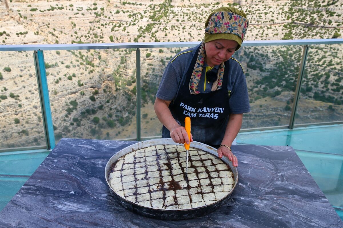 Hazırlanan zini hamursuzu baklava dilimi şeklinde kesilir ve 120 derecelik fırında yaklaşık 45 dakika pişirilir.