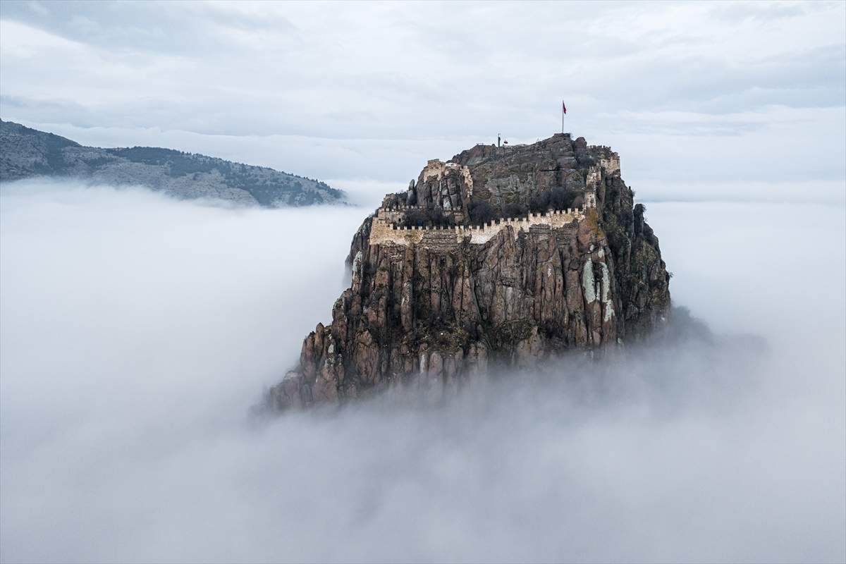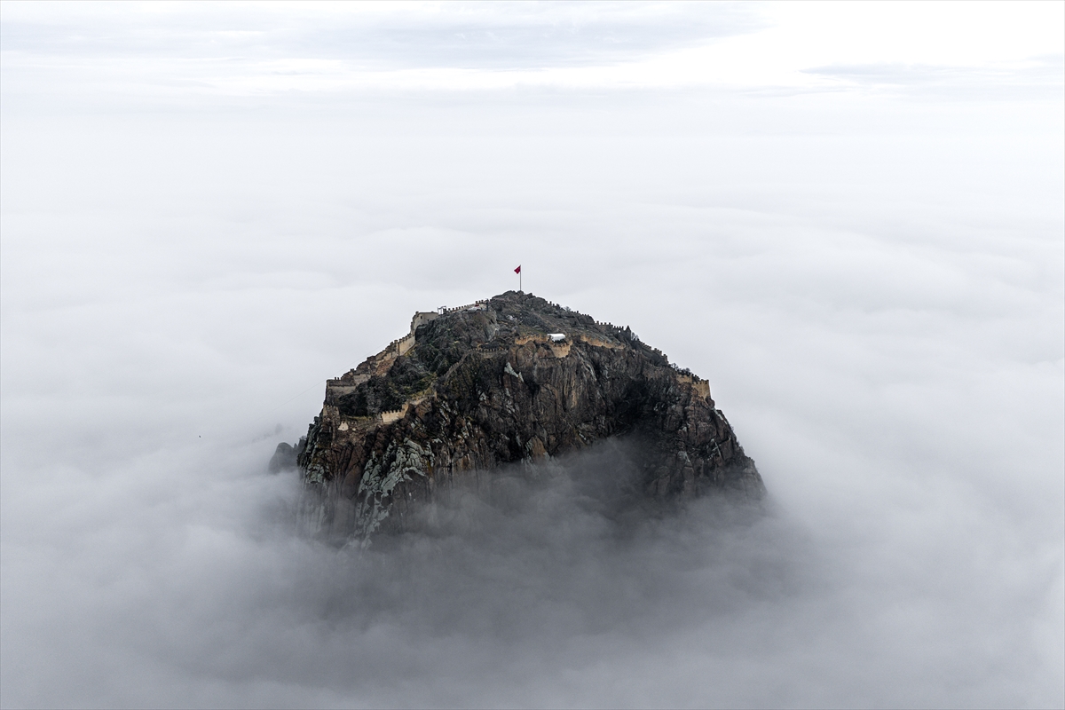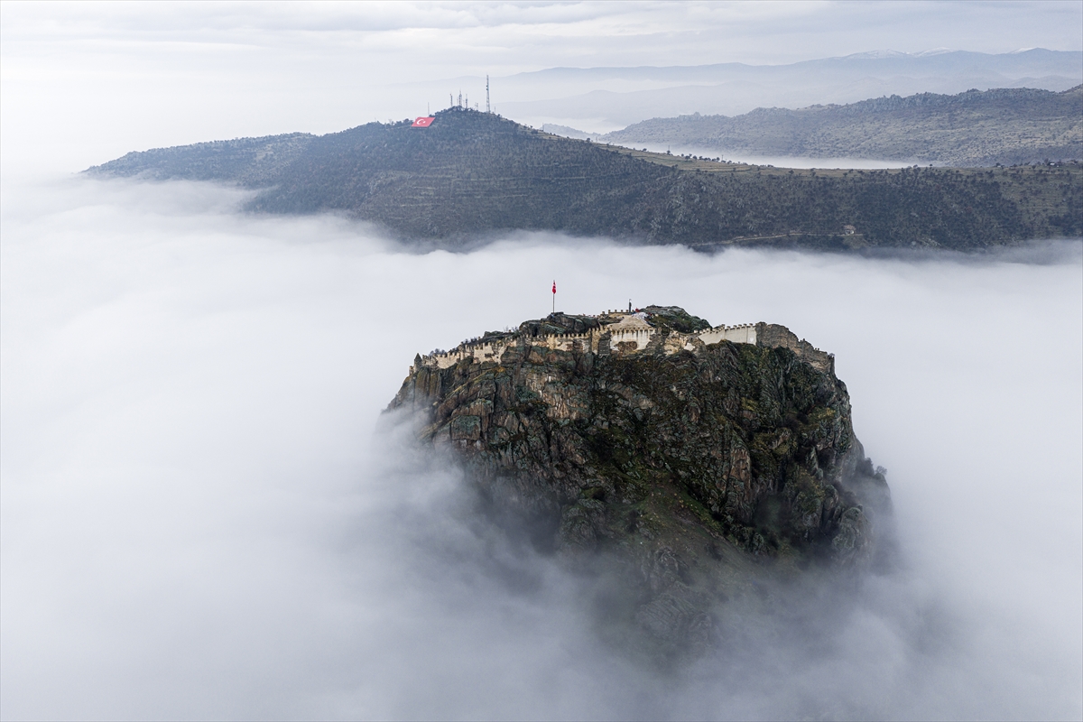 Uşak’ın kapı komşusu Afyonkarahisar’a adını veren kalenin çevresinde oluşan sis nedeniyle sadece surlar görünürken, kent tarihi drama filmlerinin çekileceği bir sete dönüştü. Sis nedeniyle kent merkezini komple bir bulut kaplarken, Afyonkarahisar Kalesi’nin sadece surları görünür hale geldi.