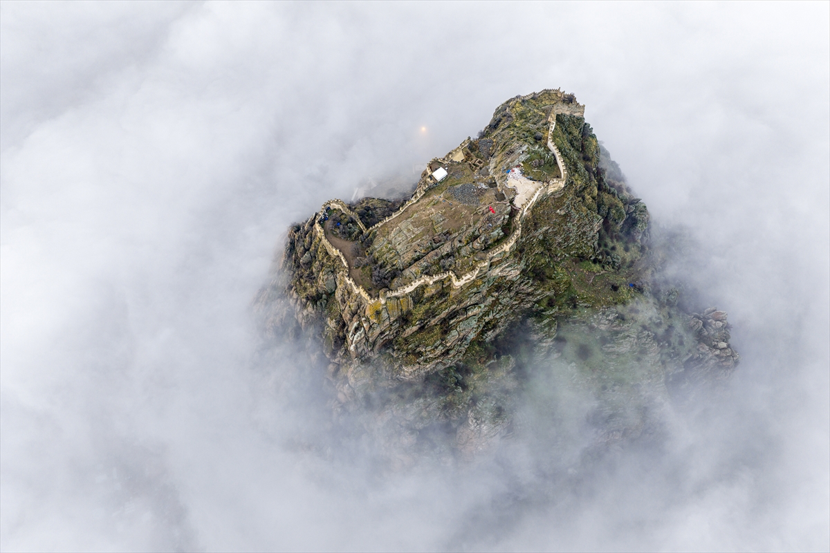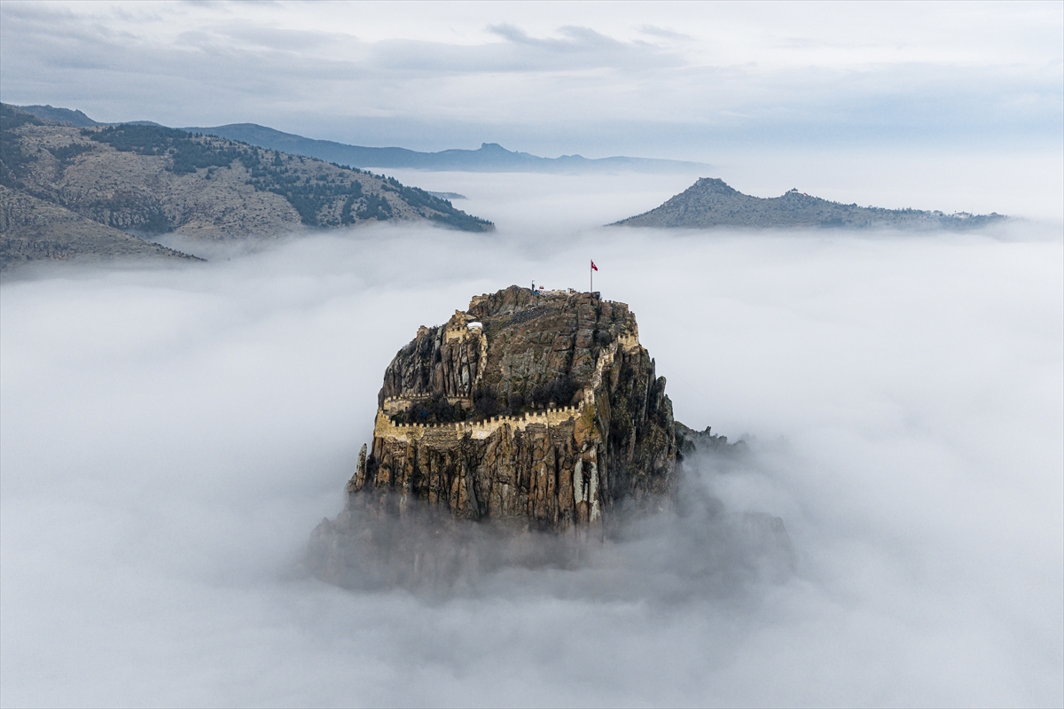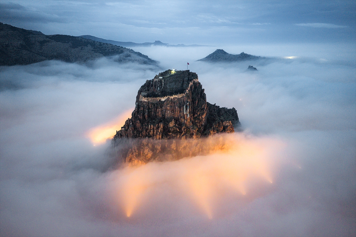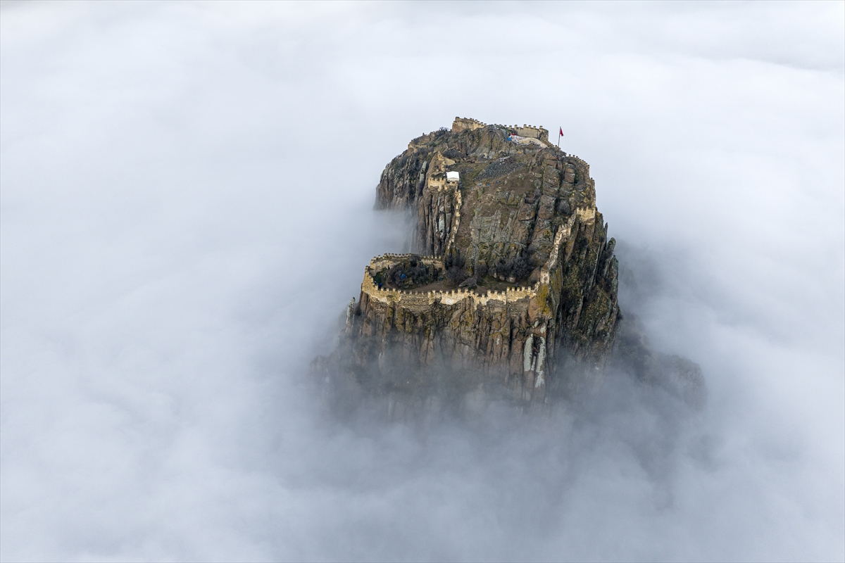 Uşak’ın kapı komşusu Afyonkarahisar’a adını veren kalenin çevresinde oluşan sis nedeniyle sadece surlar görünürken, kent tarihi drama filmlerinin çekileceği bir sete dönüştü. Sis nedeniyle kent merkezini komple bir bulut kaplarken, Afyonkarahisar Kalesi’nin sadece surları görünür hale geldi.