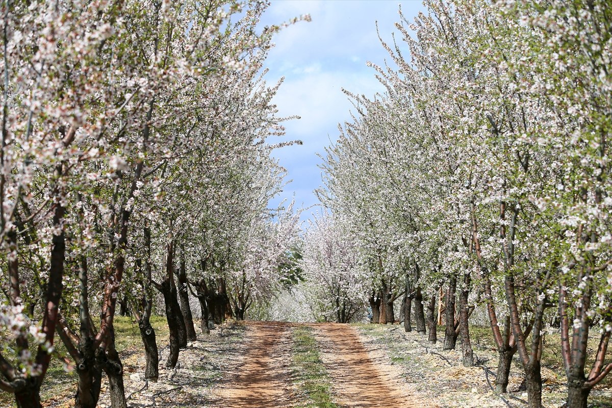 Uşak'ta baharın gelmesiyle birlikte kentteki badem ağaçları çiçek açtı. Ulubey ilçesinde yaklaşık 2 bin dekarlık badem bahçesi de ağaçların çiçek açmasıyla birlikte beyaza büründü. Türkiye'nin en büyük badem bahçeleri arasında yer alan bahçenin içerisindeki sulama havuzları çiçek açan badem ağaçlarıyla birlikte güzel görüntü oluşturdu. Dünyanın en büyük kanyonları arasında yer alan Ulubey Kanyonu'nun eteklerine kadar uzanan badem bahçesinde çiçek açan ağaçların beyaz tonları adeta bir pamuk tarlasını anımsattı.