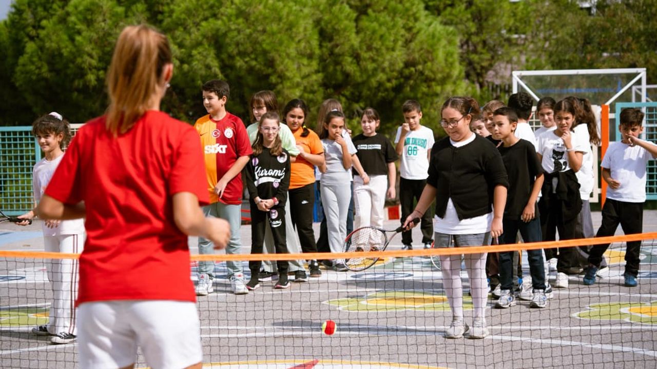 Eski milli tenisçi İpek Soylu Şemin, daha sonra çocuklarla tenis oynadı.