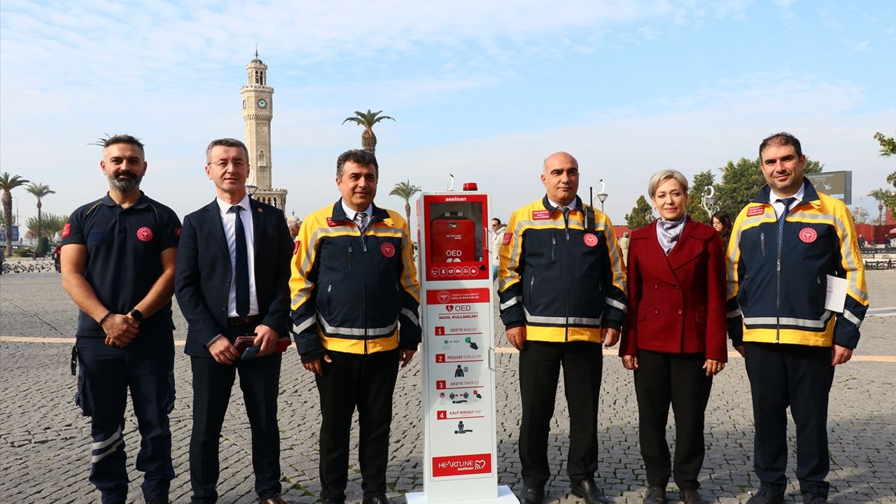 İzmir İl Sağlık Müdürü Ayhan Kul, Konak Atatürk Meydanı'na yerleştirilen şok cihazını tanıttı.