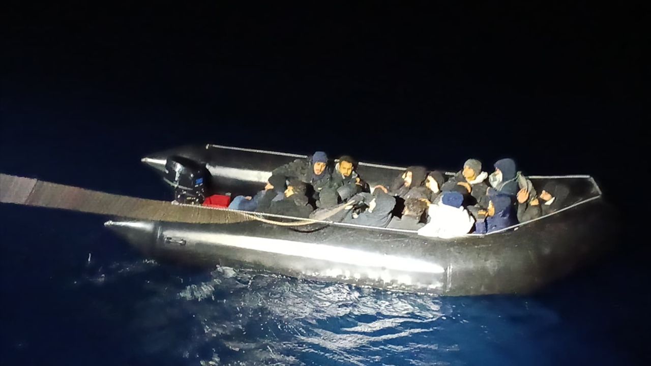 Bölgeye sevk edilen ekipler, lastik bottaki 14 düzensiz göçmeni yakaladı.