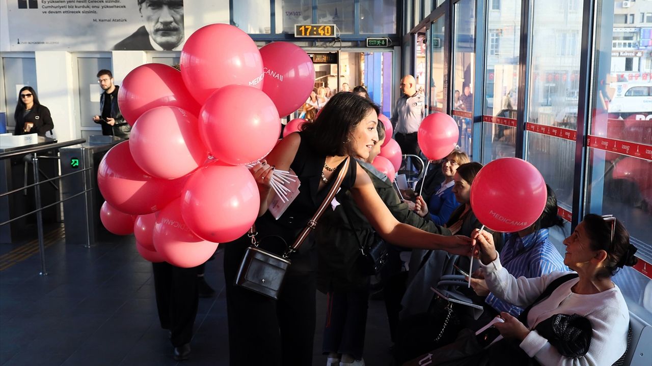 Hastaneden yapılan yazılı açıklamaya göre, İZDENİZ koordinesinde organize edilen çalışmada kadınlar vapura ellerinde pembe balonlarla bindi.