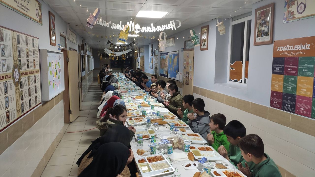 Ramazan ayının temel değerleri olan paylaşma, yardımlaşma ve dayanışma ruhunu öğrencilere aşılamak amacıyla düzenlenen program, okul koridorunda uzanan bir gönül sofrasına dönüşerek Ramazanda birlik beraberliğin önemi çocuklara hissettirildi.