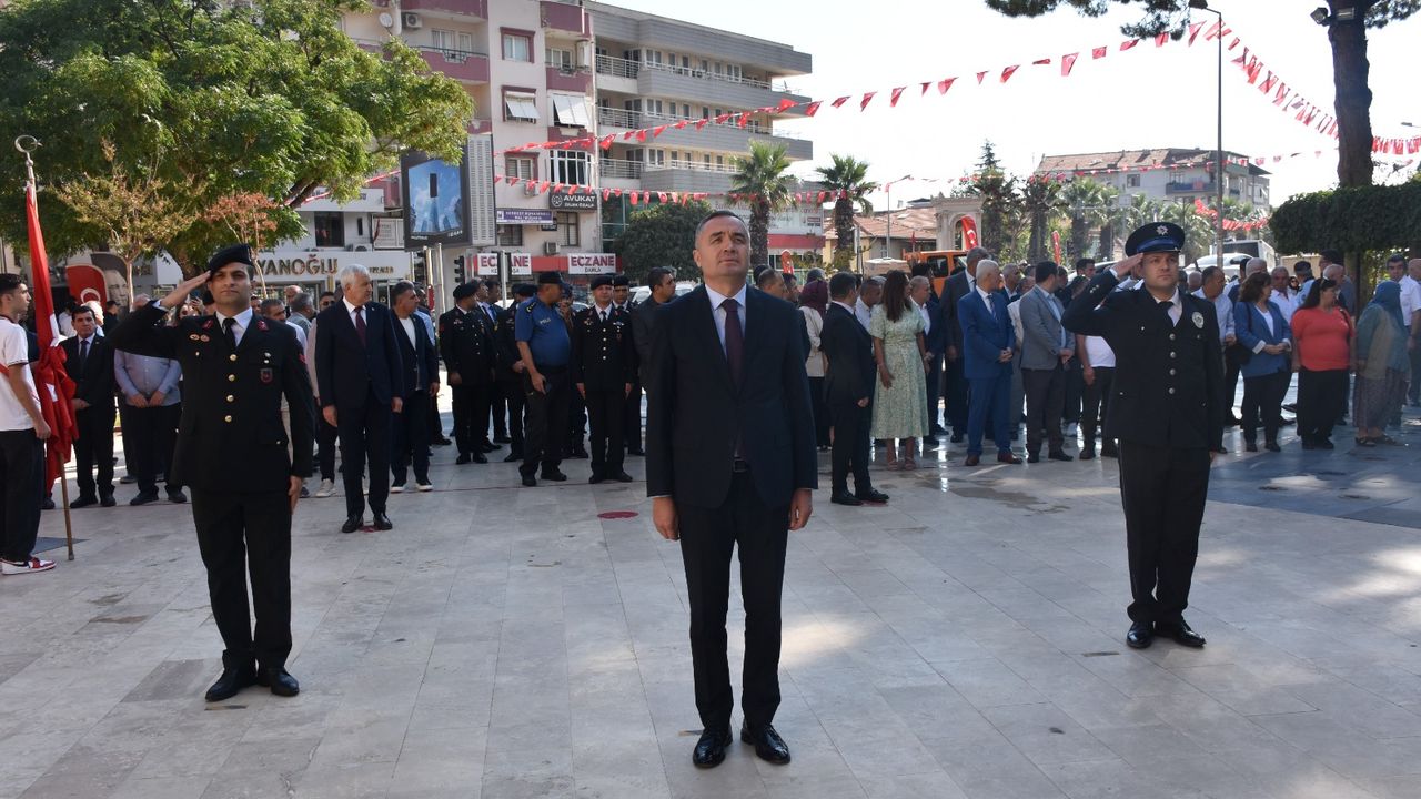 Kemalpaşa Kaymakamı Musa Sarı, törende Büyük Önder Gazi Mustafa Kemal Atatürk'ün İzmir'in düşman işgalinden kurtuluşundan bir gün önce ilçede konakladığını belirterek, yürüttüğü mücadeleyi anlattı.