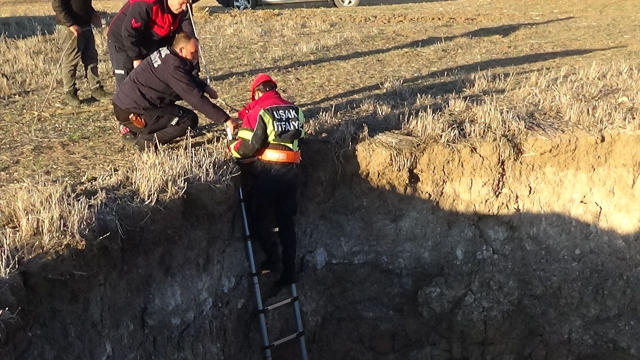 Bir merdiven yardımıyla kuyuya inen itfaiye ekipleri keçiyi bulunduğu yerden çıkardı.
