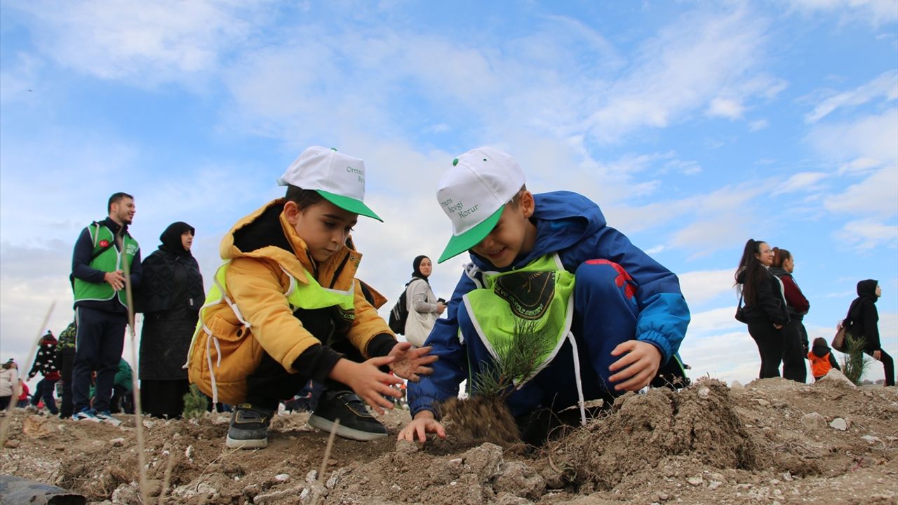Öğrencilerin şiirler okuduğu, halk oyunları gösterisinin sunulduğu programda, protokol üyeleri, öğrenciler ve vatandaşlar fidanları toprakla buluşturdu.