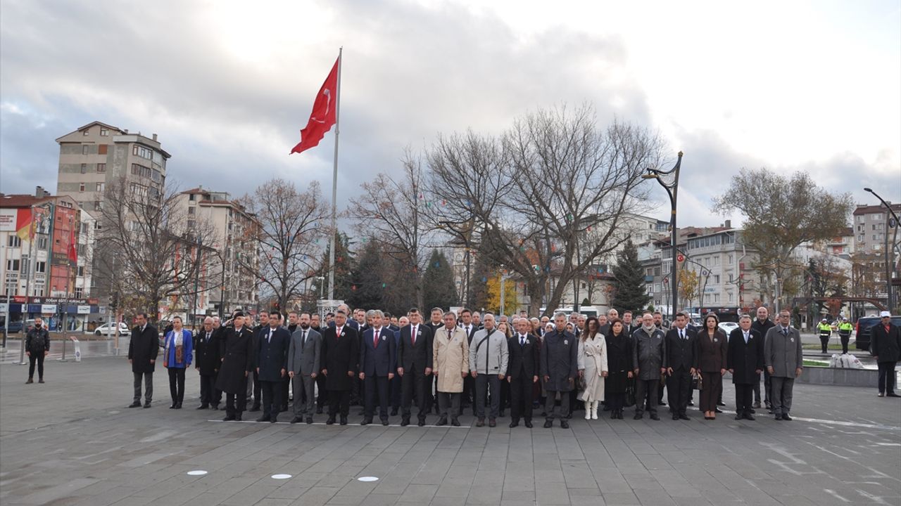Kütahya Zafer Meydanı'ndaki törende İl Milli Eğitim Müdürü Mustafa Yılmaz, Atatürk anıtına çelenk sundu.