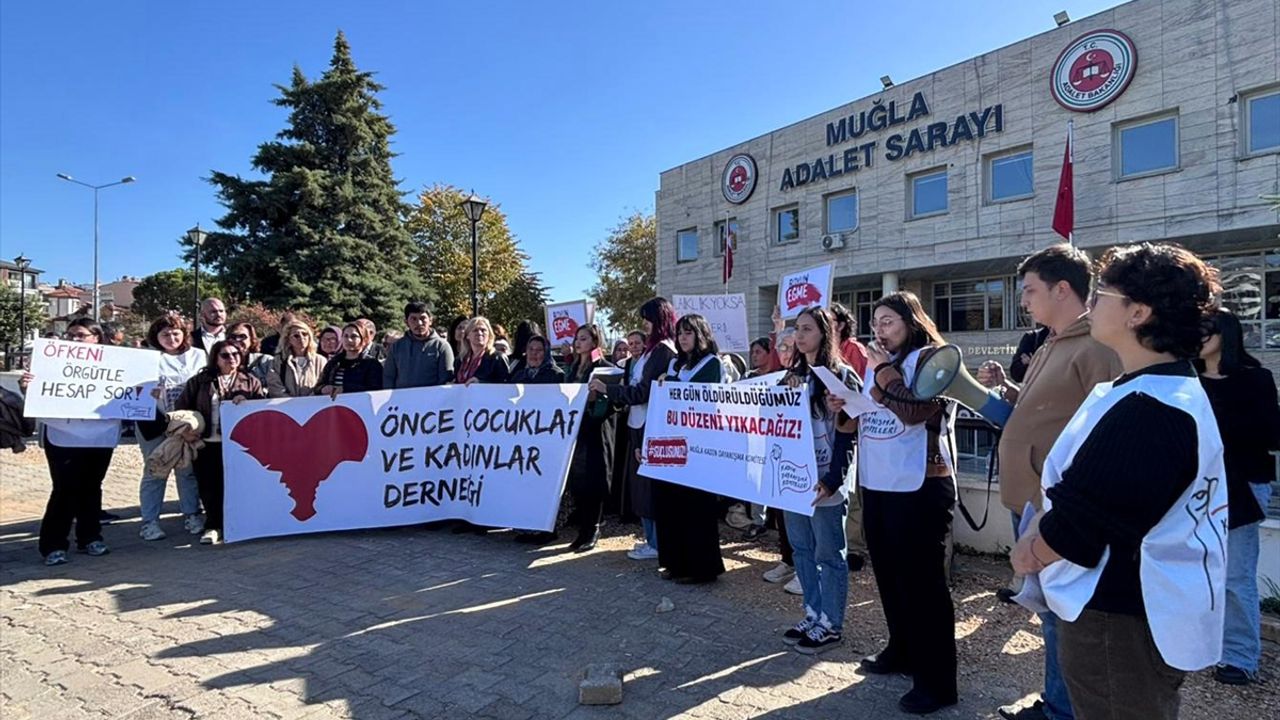Öte yandan Muğla Kadın Dayanışma Komiteleri de adliye önünde pankart açarak kadın cinayetlerini protesto etti.