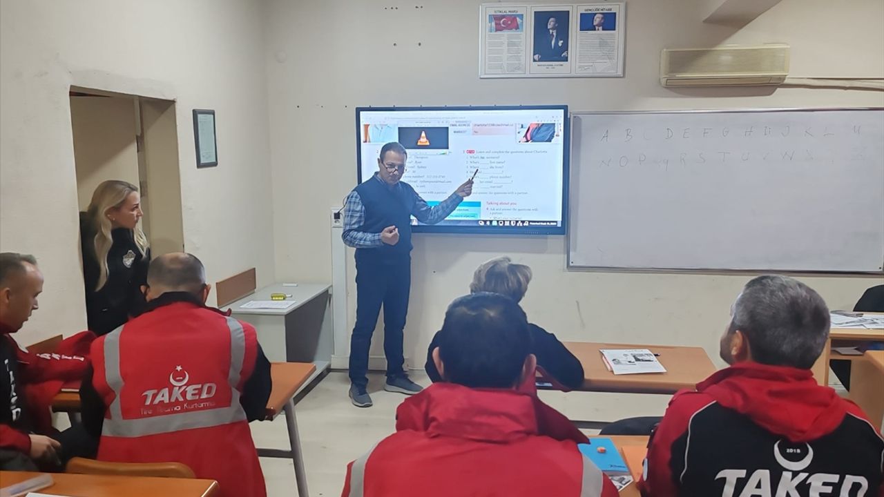 Gönüllülerden oluşan Tire Arama Kurtarma ve Eğitim Derneği (TAKED) üyeleri, yurt içinde yabancı uyruklu afetzedelere müdahalede bulunabilmek ve ihtiyaç halinde yurt dışı arama kurtarma operasyonlarında görev alabilmek amacıyla İngilizce eğitimi alıyor.