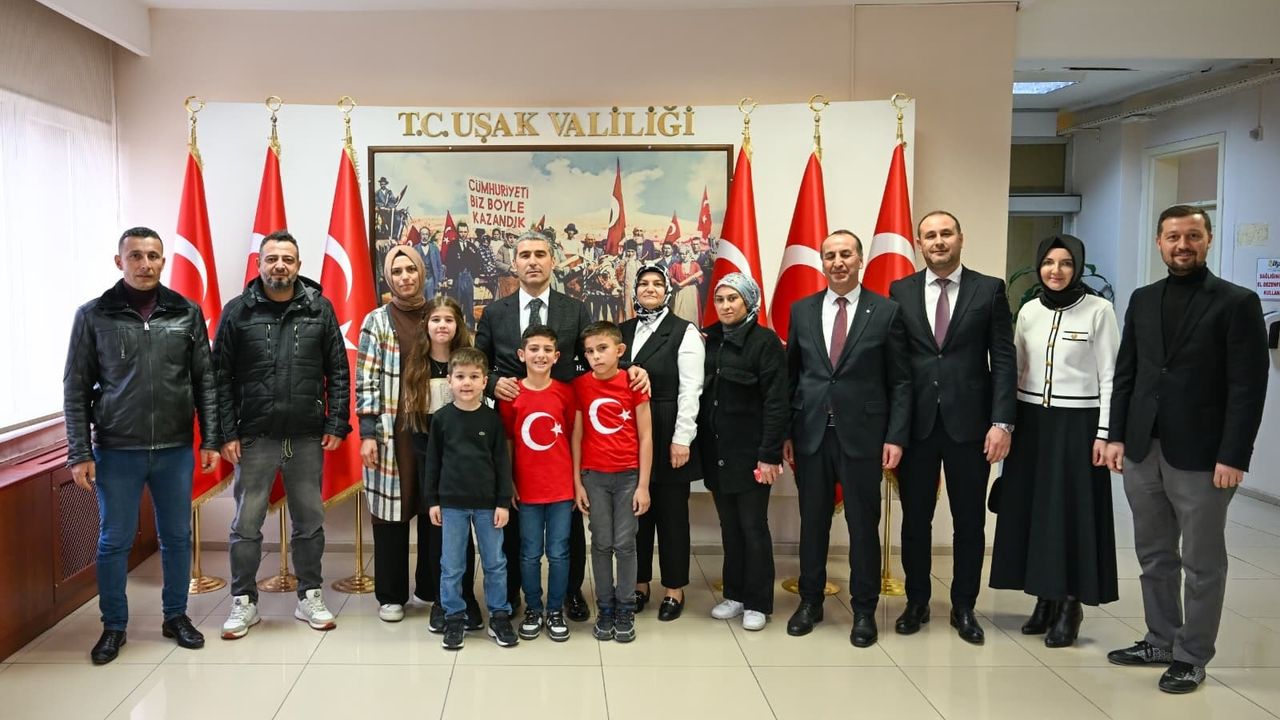 İl Milli Eğitim Müdürü Halil Yücel’in eşlik ettiği programda öğrenciler ve velileriyle sohbet eden Vali Naci Aktaş, bu tür duyarlı ve değerlerine bağlı öğrencilerin Uşak’ta bulunmasından büyük gurur duyduğunu ifade etti. Ziyaret, Vali Aktaş’ın öğrenciler ve aileleriyle birlikte Uşak Valiliği binasında makam katında yer alan Türk Bayrakları önünde hatıra fotoğrafı çektirmesiyle sona erdi.