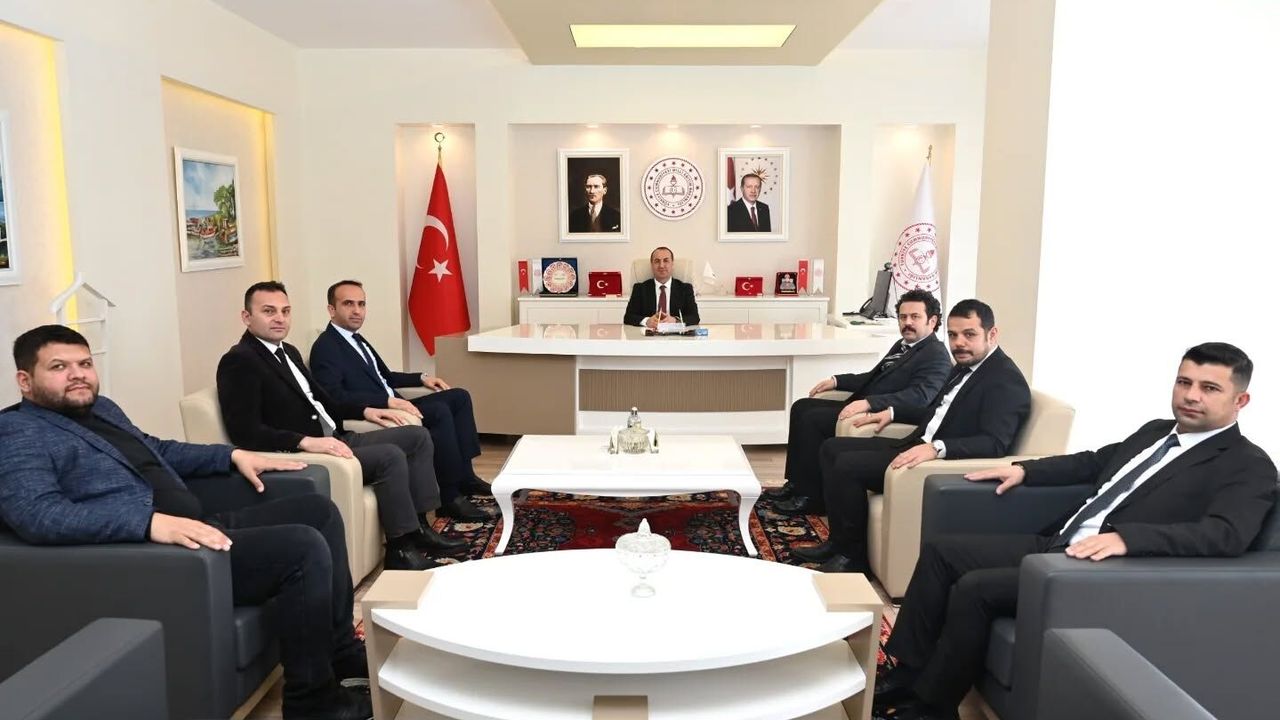 Türk Eğitim-Sen Uşak Şubesi’nde gerçekleşen başkan değişiminin ardından, yeni Şube Başkanı Hüseyin Cavit Akbay ve beraberindeki yönetim kurulu üyeleri, protokol ziyaretleri kapsamında Uşak İl Millî Eğitim Müdürü Halil Yücel'i makamında ziyaret etti.