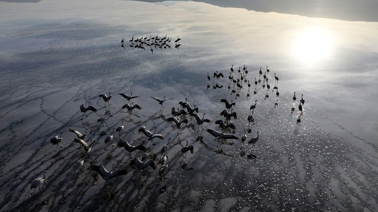 GÖLDE KARAKALEM GÖRÜNTÜLER OLUŞTURAN KUŞ HAREKETLERİ