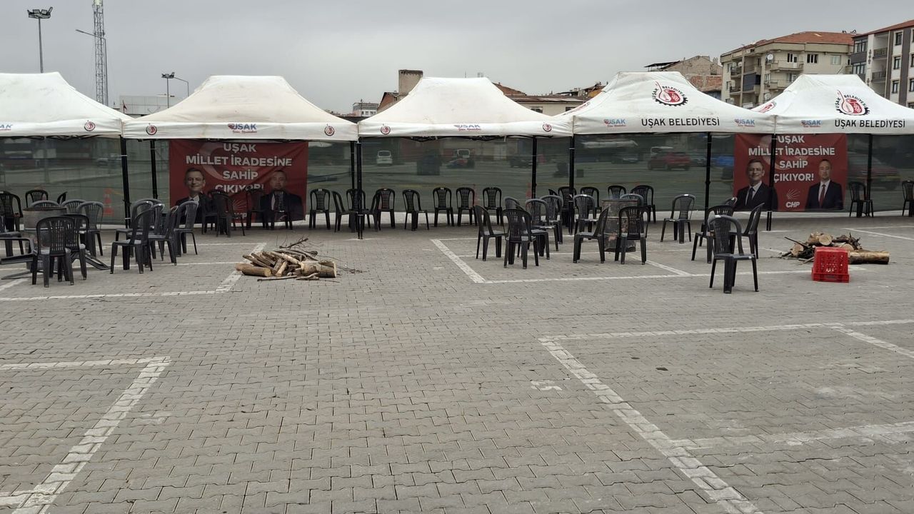 Uşak Belediyesi ve Belediye Başkanı Özkan Yalım’a karşı rüşvet, irtikap ve ihaleye fesat karıştırma gibi suçlamalarla başlatılan soruşturma bir anda ülke gündemine bomba gibi düştü. Dün başlatılan soruşturmada Uşaklı vatandaşlar gün boyu konuyla ilgili haberleri yakından yakından takip ederek bilgi almaya çalıştılar. Gün içerisinde CHP Uşak teşkilat yönetimi ve Milletvekili Ali Karaoba, zaman zaman yaptığı açıklamalarla kamuoyunu bilgilendirmeye çalıştı. Cumhuriyet Halk Partisi Uşak İl Başkanı Celalettin Çoban ise Uşak Belediyesi Başkanlığı’nı vekaleten Tolga Pirinçci’nin yürüteceğini açıklamıştı. Gün boyu parti üyeleri de Özkan Yalım’a destek olmak için belediye önü ve parti binası önünde toplandı. Ancak bugün saat 10:00’da planlanan demokrasi nöbetine katılım sağlanamadı. Belediye binasının Pazar yeri tarafına hazırlanan alan soğuk hava ve beklenen yağmur yağışı neticesinde boş kaldı. Hazırlıklarını yapan işçiler henüz meydana gelenlerin olmadığını söyledi.