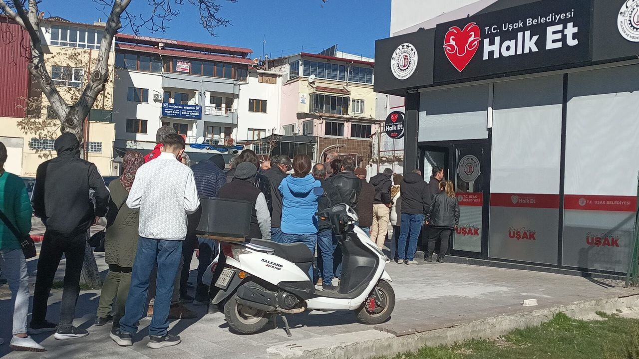 Uşak Belediyesi Halk Ette bugün saat 10:30 itibariyle et bitti. Vatandaş, kuyrukta beklerken çoğunluğu et alamadan geri döndü. Uşak Halk Et'te kıyma 650 TL ve kuşbaşı etin bütün olarak 750 TL olarak satılıyor. Günlük yaklaşık 500 kilogram et, Uşaklı vatandaşın ihtiyacını karşılamıyor. Vatandaş, halk etin daha fazla satış yapmasını bekliyor. Piyasada yüksek olan et fiyatları vatandaşın belini büküyor. Piyasada dana eti 1000 TL ve kıyma ise 850 ila 900 TL arasında değişiyor. Kavurma eti ise 1200 ila 1500 TL arasında yağ oranına göre farklılık gösteriyor.