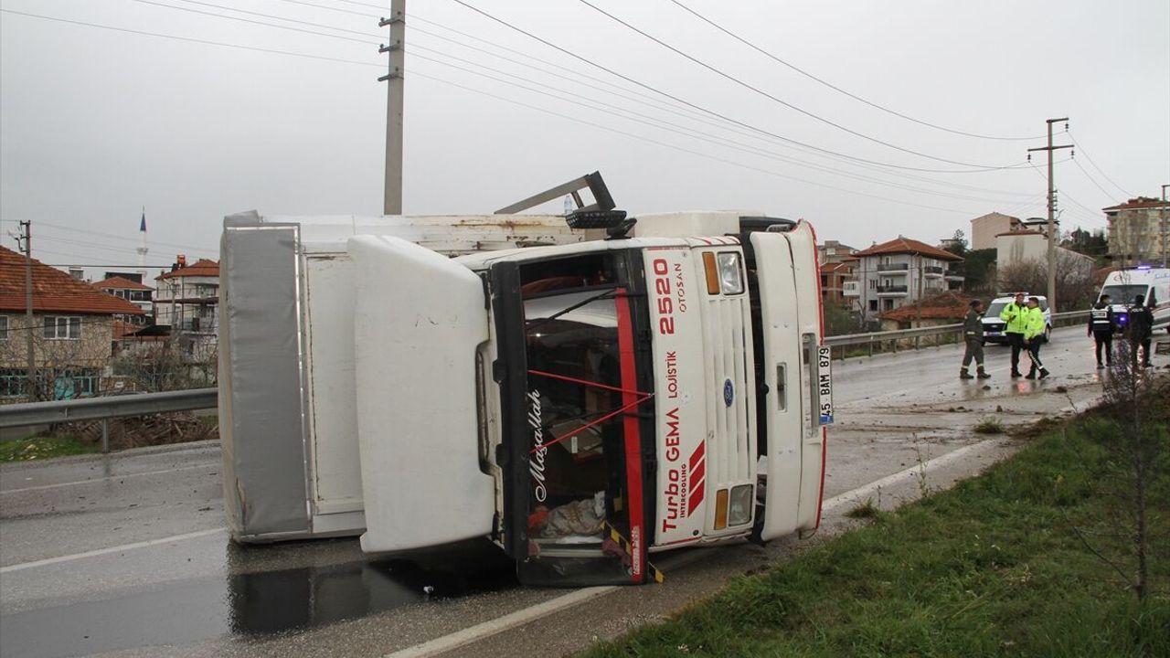 Ümit İdem'in kullandığı 45 BAM 879 plakalı kamyon, İzmir-Uşak kara yolu Kavacık rampasında sürücünün direksiyon hakimiyetini kaybetmesi sonucu devrildi. Sürüklenen kamyon refüjdeki elektrik direğine çarparak durabildi. İhbar üzerine kaza yerine polis, itfaiye ve sağlık ekibi sevk edildi. Hafif yaralanan sürücü, ambulansla Kula Devlet Hastanesine kaldırıldı. Bir süre trafiğe kapatılan yol, kamyonun kaldırılması ve temizlik çalışmalarının ardından tekrar açıldı. Kaza anının ise çevredeki evin güvenlik kamerasınca kaydedildiği bildirildi.