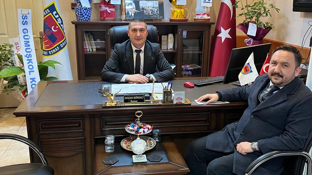 Uşak Manifaturacılar ve Tuhafiyeciler Esnaf Odası Başkanı Abdullah Can ile Uşak Servis Araçları İşletmecileri Esnaf Odası Başkanı Doğan Börekçi makamlarında ziyaret edildi.