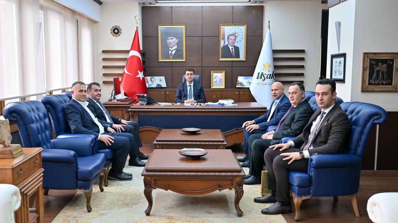 Uşak Ticaret Borsası Yönetim Kurulu Başkanı Mustafa Sezer ve kurum yöneticileri, bir süre önce göreve başlayan Uşak Valisi Serdar Kartal’ı ziyaret etti. Ziyarette Uşak Ticaret Borsası Meclis Başkanı Ömer Özden, Uşak Ticaret Borsası Yönetim Kurulu Başkan Yardımcısı Sedat Çamcı ve Yönetim Kurulu Üyesi Bahri Poyraz ile Uşak Ticaret Borsası Genel Sekreteri Oğuz Çelik de yer aldı. Ziyarette Uşak Ticaret Borsası’nın yaptığı faaliyetler ve çalışmalarla ilgili bilgi veren Başkan Mustafa Sezer, üreticinin emeğinin karşılığının korunması için çalıştıklarını kaydetti. Sezen, modern ticaretin gerekliliği olan dijital dönüşümü de ihmal etmediklerini ve üyelerin rekabet gücünü artırmak için Uşak Ticaret Borsası’nın gerekli çalışmaları yaptığını aktardı. Öte yandan ziyaretle ilgili bir hatıra fotoğrafı çekildi ve Uşak Valiliği’nin sosyal medya hesaplarından paylaşıldı.