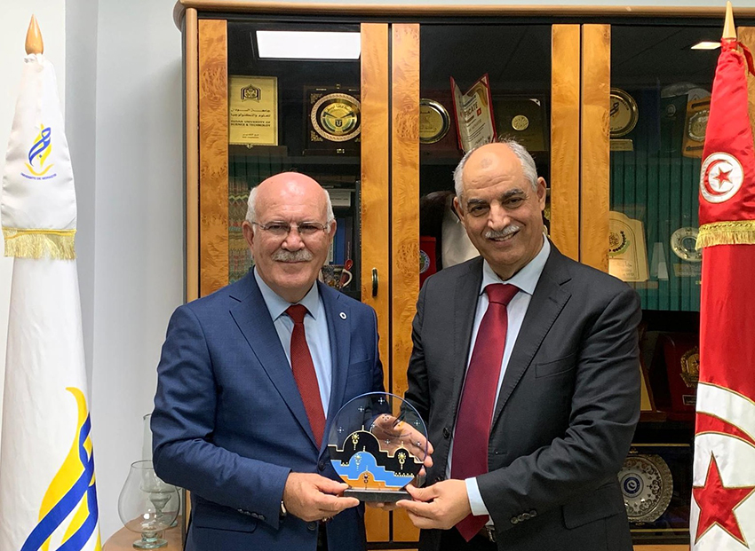 İkili iş birliğinin öne çıktığı görüşmede Rektör Savaş, Rektör Carrada ile Doç. Dr. Trabelsi’ye plaket takdim etti.