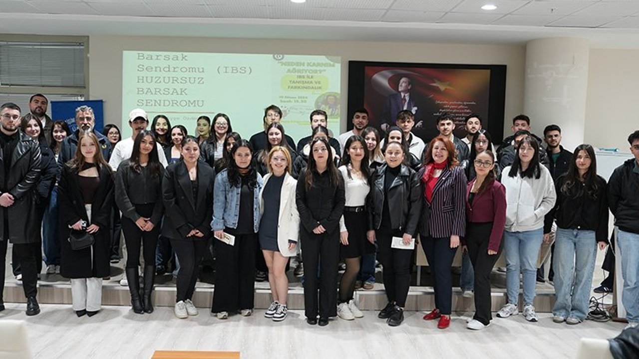 Düzenelenen konferansta, Doç. Dr. Ayşe Özdemir’in konuşmacı olarak bilgilerini dinleyicilerle paylaştığı ifade edildi. Konuşmacı Özdemir, IBS’nin belirtileri, tetikleyici faktörleri ve bireyler üzerindeki etkilerine dair kapsamlı bilgileri dinleyicilerle paylaşırken hastalığın doğru bilinen yanlışlarına da değindi. Programda katılımcılara bilgilendirici broşürler dağıtılarak konuya ilişkin temel bilgiler paylaşılmasının yanında konuya ilişkin videolar da izletildi. Halkla ilişkiler öğrencileri tarafından bir kampanya kapsamında organize edilen etkinlik, 3. sınıf öğrencileri Aylin Erkoç ve Miray Bali öncülüğünde hayata geçirildi. Öğrenciler, bu çalışma ile hem toplumsal farkındalık oluşturmayı hem de iletişim becerilerini sahada uygulamayı hedeflediklerini belirtti.