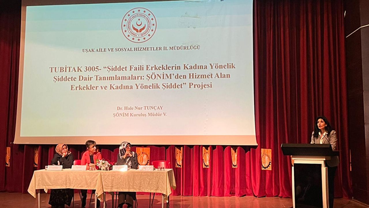 Panelde Aile ve Sosyal Hizmetler İl Müdürlüğü ŞÖNİM Müdürü Dr. Hale Nur Tunçay, “Şiddet Faili Erkeklerin Kadına Yönelik Şiddete Dair Tanımlamaları” başlıklı sunum yaptı. Tunçay, ŞÖNİM’den hizmet alan erkeklerin beyanları üzerinden yürütülen araştırmadan bulgular aktardı.