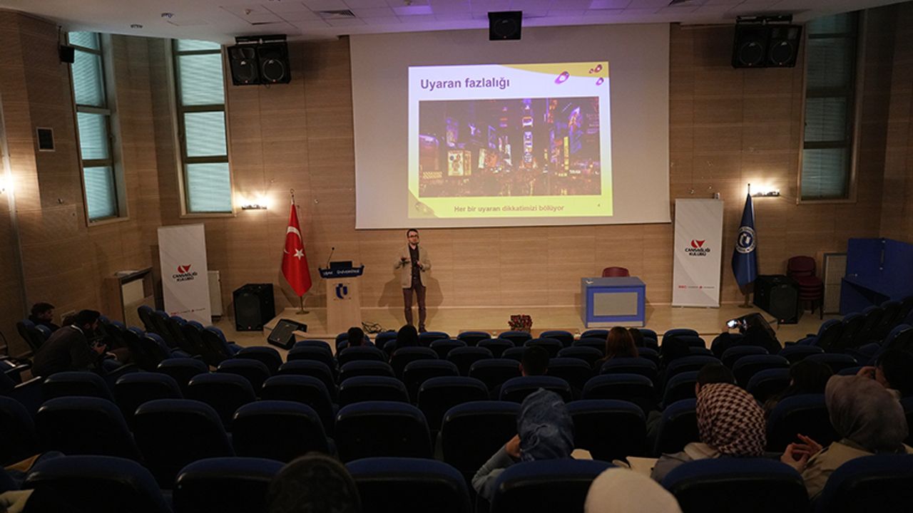 Dr. Öğr. Üyesi Kutlu, konferans sırasında “küresel dikkat krizi, günümüzde yaşanan uyaran bombardımanı, uyaran fazlalığının beynimiz ve dikkat becerimize etkisi, dikkat eksikliğinin bedelleri, dikkat eksikliğine karşı toplumsal farkındalıkta azalma ve nasıl bu hale geldik?” konularını ele aldı.