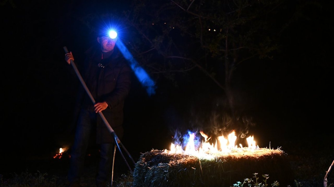 İlçede 900-1000 rakıma yakın bölgelerdeki badem bahçelerinde, ağaçların çiçeklenme ve filizlenme döneminde soğuktan zarar görmemesi için üreticiler seferber oldu. 11 Nisan'a kadar sürmesi beklenen dondurucu soğuklara karşı çiftçiler, tarlalarına yerleştirdikleri saman balyaları ve badem kabuklarını yakarak dumanlama yöntemiyle ağaçlarını korumaya çalışıyor. Çiftçiler akşam başlattıkları dumanlama çalışmalarını sabahın ilk saatlerine kadar sürdürüyor. İlçe Tarım ve Orman Müdürü Faruk Şenyurt, bahçelerinde zirai donla mücadeleden çiftçileri ziyaret ederek, soğuk hava dalgası süresince dikkat edilmesi gereken hususlar hakkında bilgi paylaştı. Şenyurt, yaptığı açıklamada, 2025 yılında da ülke genelinde zirai don yaşandığını söyledi.