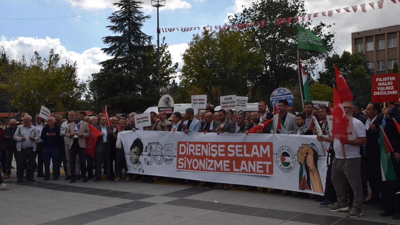 İsrail’in Gazze’deki zulmüne karşı İsmetpaşa Caddesi’ndeki eski belediye binası önünde toplanan sivil toplum örgütlerinin temsilcileri, kamu kurumu yöneticileri ve vatandaşlar, 15 Temmuz Şehitleri Meydanındaki Atatürk Anıtı önüne kadar yürüdüler. Yürüyüşte katil İsrail’in Gazze ve Filistin’deki diğer yerleşim yerlerindeki zulmüne tepki gösterildi. Yürüyüşten sonra Gazze’deki zulmün son bulması ve 2 yıldır devam eden soykırım ve ablukanın son bulması için açıklamalar yapıldı. Uşak İl Müftüsü Mesut Harmancı da Gazze ve dünyanın diğer bölgelerindeki zulmün son bulması için dua etti. Yürüyüşe katılanlar da avuçlarını zulmün son bulması için açtılar ve dua ettiler.