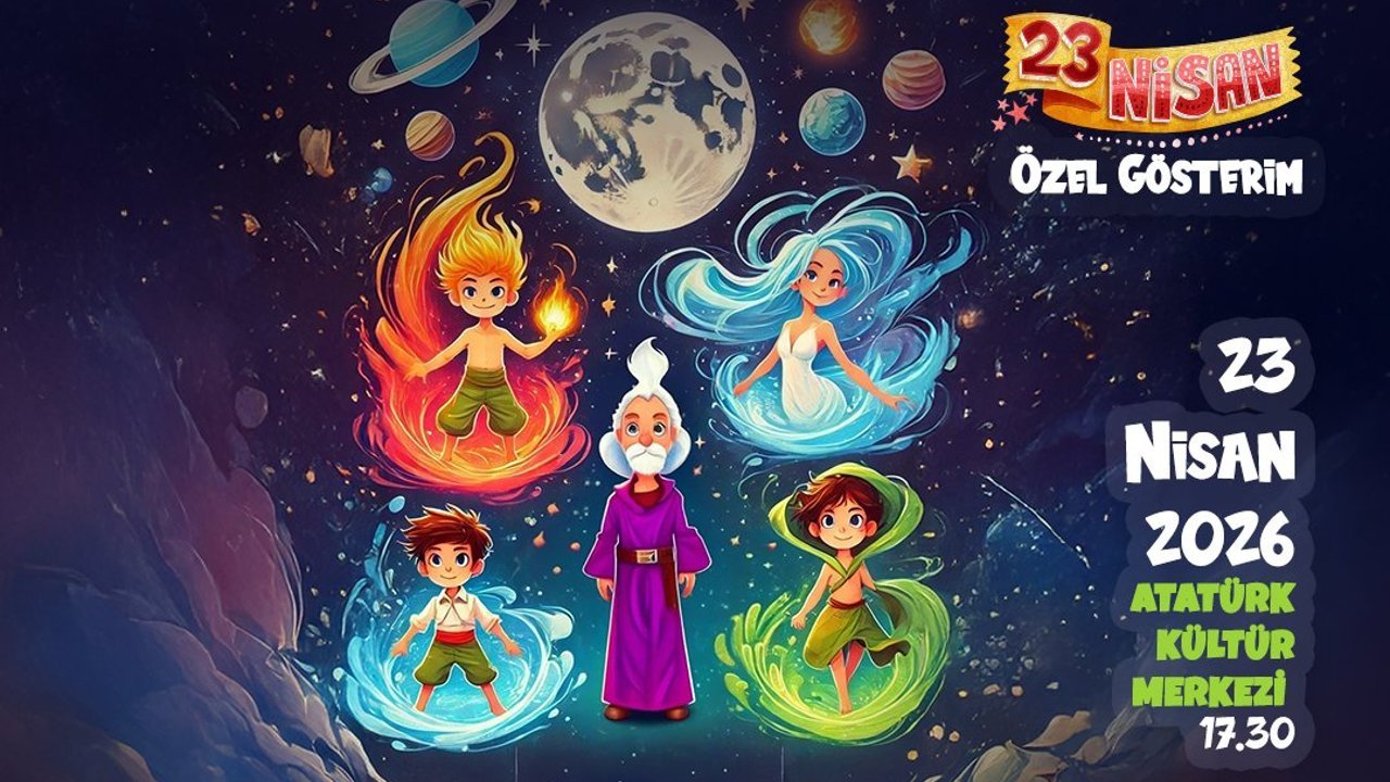 23 Nisan özel gösterimli tiyatro oyununun yazarlığını Birgül Yeşiloğlu Güler yaparken yönetmen koltuğunda ise Ahmet Büyükuğurlu oturuyor. Uşak Belediyesi Şehir Tiyatrosu ise sahnelenecek oyunu, “23 Nisan Ulusal Egemenlik ve Çocuk Bayramı’na özel muhteşem bir gösteriyle çocuklarla buluşuyor! Hava, Su, Ateş ve Toprak’ın Bilge Baba ile olan büyüleyici yolculuğuna tanıklık etmeye hazır mısınız? Paylaşımıyla duyurdu. Oyunda Bilge Baba’ya Çağrı Gülerer hayat verirken; ‘havaya’ Deniz Toprak, ‘suya’ İlknur Şen, ‘ateşe’ Furkan Alkan ve ‘toprağa’ Zehra Tutar hayat veriyor. Ücretsiz olarak sahnelenecek tiyatronun bilet dağıtımı Atatürk Kültür Merkezi bilet satış noktasından yapılacak ve tiyatro oyunu saat 17.30’da başlayacak.