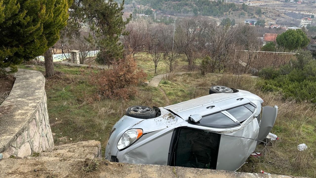 Kontrolden çıkan otomobil, yolun yaklaşık 15 metre aşağısındaki bahçeye devrildi.