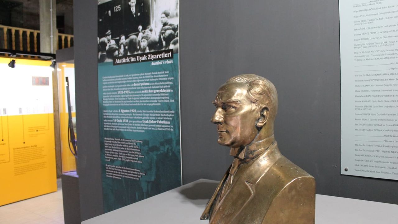 Uşak Kent Tarihi müzesi, 2009 ve 2014 döneminde Uşak Belediye Başkanlığı yapan Ali Erdoğan ve ekibi tarafından kuruldu. O dönemi anlatan Uşak Tanıtım ve Kültür Gönüllüleri Derneği Başkanı Mehmet Keyvanoğlu, “Unutulmuş Anılardan Yaşanılmış Anılara” isimli kitabında, müzedeki eserlerle ilgili detaylara yer verdi. Dönemin Uşak Belediye Başkanı Ali Erdoğan, müzede yer alan çok önemli bir eser hakkında detaylar verdi. Müze binasının girişindeki Atatürk büstünün, dünyaca ünlü heykeltıraş Pietro Canonica’nın eseri olduğunu belirten Ali Erdoğan, depoda kaderine terk edilen önemli bir yapıtı, koruma altına aldıklarını ifade etti. Erdoğan, şöyle söyledi: “Müzede çok değerli objeler vardır ve bunlardan birisi de Atatürk büstüdür ve paha biçilemezdir. Bu eseri, dünyaca ünlü heykeltıraş Pietro Canonica, bize kazandırdı ve bir depoda bulundu. Haydar Doğan bana bu konudan bahsettiğinde çok heyecanlandım”. Mustafa Kemal Atatürk’ün büstlerinin genelde soğuk bir yüz ifadesiyle oluşturulduğunu dile getiren Ali Erdoğan, Uşak Kent Tarihi Müzesi’ndeki eserde tebessüm ettiğini ve bu yönüyle de bir önemli bir örnek olduğunu aktardı.