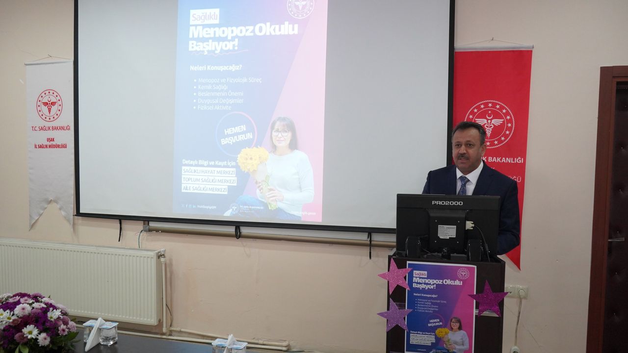 Uşak İl Sağlık Müdürlüğü bünyesinde kurulan menopoz okuluna tüm kadınların katılabileceğini kaydeden Uşak İl Sağlık Müdürü Doç. Dr. Tarık Acar, kadın sağlığı, toplum sağlığının temeli olduğunu belirterek, “Sağlıklı kadın sağlıklı aile demektir; Sağlıklı aile ise sağlıklı toplumun temelini oluşturur ve Sağlık Bakanlığımız öncülüğünde hayata geçirilen Sağlıklı Menopoz Okulu Programı’nın ilimizde uygulanmasından büyük memnuniyet duyuyorum. Bu programın kadınlarımızın yaşam kalitesine olumlu katkılar sağlayacağına yürekten inanıyorum” diye konuştu.