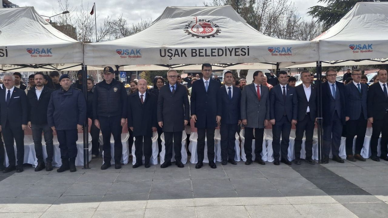 Özbekistan ve Türkmenistan’lı öğrencilerin hatıra fotoğrafı sonrası Uşak Valisi Serdar Kartal, CHP Uşak Milletvekili Ali Karoba, Uşak Üniversite Rektörü Ahmet Demir, Uşak İl Emniyet Müdürü Taner Çiftçi ve Uşak İl Jandarma Komutanı Özgür Kılıç’la beraber diğer protokol üyeleri sembolik demir dövme ve ok atma merasimi gerçekleştirdi. Ardından ok yapımı aşamasındaki bilgi standını gezen Serdar Kartal ve milletvekili Ali Karaoba, ok ustalarından bilgi alırken vatandaşlara Hedik (buğday) ve tarhana çorbası ikramında bulundu. Ardından valilik binası önünde keçi kılından yapılan ‘Yörük Çadırına’ geçen Serdar Kartal ve Ali Karaoba okumak için Uşak’a gelen Türkmenistan ve Özbekistan’lı öğrencilerle sohbet edip hatıra fotoğrafı çektirdi. Tören, alanda yakılan Nevruz Ateşi’nin üzerinden protokol üyeleri ve vatandaşların atlamasının ardından sona erdi.