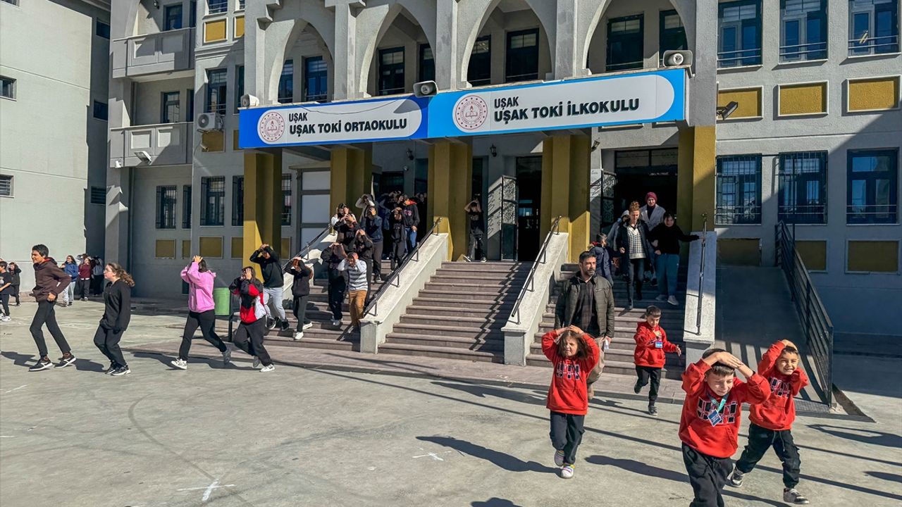 Uşak'ta kent genelinde eş zamanlı yapılan tatbikat kapsamında saat 11.00'de tüm okullarda siren çaldı.