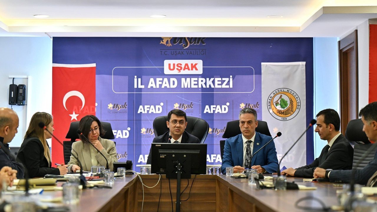 Uşak Valisi Serdar Kartal başkanlığında, 2026 yılı orman yangınlarıyla etkin mücadele kapsamında ‘Uşak İli Orman Yangınlarıyla Mücadele Komisyonu’ toplantısının gerçekleştirildiği ifade edildi. Uşak Afet ve Acil Durum İl Müdürlüğü’nde düzenlenen toplantıda, yangınlara karşı alınacak önleyici tedbirler, kurumlar arası koordinasyon ile müdahale kapasitesinin güçlendirilmesi ve riskli bölgelerde yürütülecek çalışmaların ele alındığı aktarıldı. Vali Kartal’ın başkanlığını yaptığı toplantıya Belediye Başkanvekili Hatice Terekeci Özkan, Uşak İl Emniyet Müdürü Taner Çiftçi ve Uşak İl Jandarma Komutanı Jandarma Albay Özgür Kılıç’ın da katıldığı kaydedilirken Bölge Müdürü Ahmet Köle ve Uşak Orman İşletme Müdürü Mustafa Dağıstanlı’nın orman yangınlarıyla ilgili bilgilendirme sunumu yaptığı ve yangın sezonu öncesi alınması gereken tedbirlerin konuşulduğu ifade edildi.