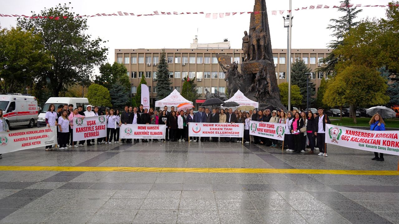 Uşak İl Sağlık Müdürlüğü, kentteki kadınları meme kanseriyle mücadelesi için bir yürüyüş organize etti ve Kanserle Savaş Derneği’nin de katılımıyla, Uşak Yöresel Ürünler Çarşısı’nda 15 Temmuz Şehitleri Meydanına kadar kansere karşı sloganlar atıldı. Erken teşhisin hayat kurtardığı ve kadınların neler yapması gerektiğine dair bilgiler verildi ve broşürler dağıtıldı. Meme kanserine karşı yapılan yürüyüşte Uşak İl Sağlık Müdürü Doç. Dr. Tarık Acar da yer alırken, 15 Temmuz Şehitleri Meydanı’nda bulunan Atatürk Anıtı önünde bir açıklama yapıldı.